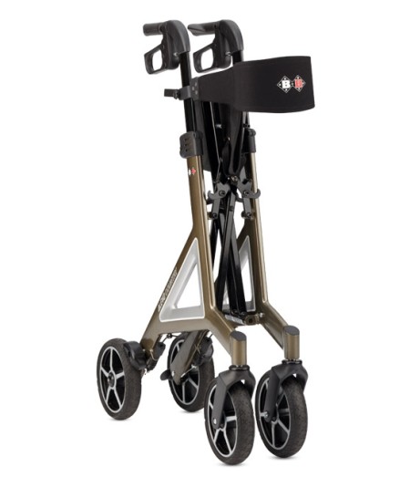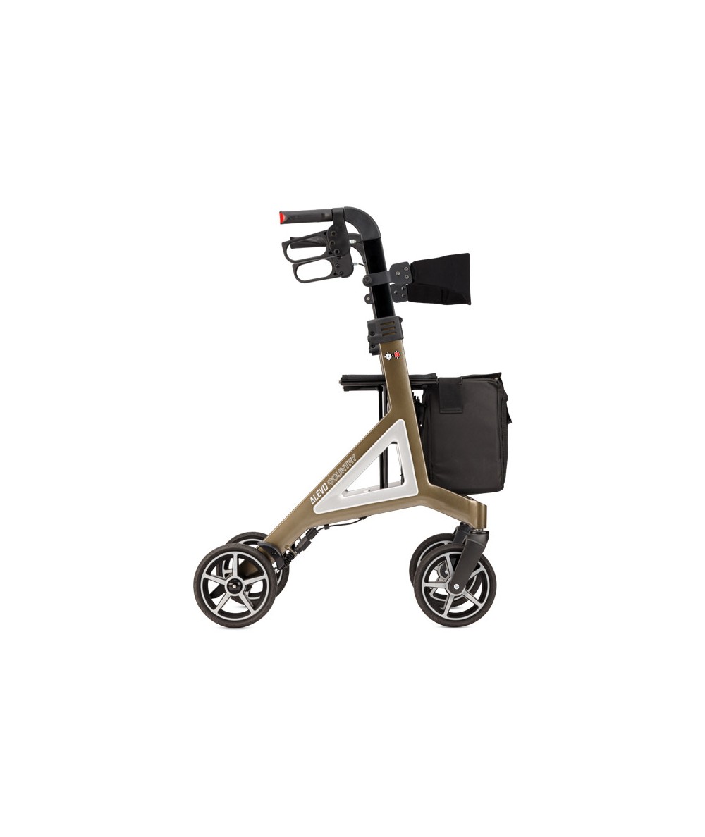 Tanto la forma como los elementos de equipamiento acreditados de este andador ligero responden al diseño icónico de Alevo. Los agarres de forma ergonómica, las empuñaduras de altura regulable con freno de estacionamiento, la cruceta con cierre doble, los cables de freno interiores, los reflectores integrados en el armazón y el diseño en triángulo de color plata proporcionan una estética nítida y estabilidad. Alevo Country viene equipado de serie con un dispositivo de ayuda a la inclinación. El mecanismo de plegado con una sola mano puede ejecutarse sin preparación previa. Cuando está plegado, Alevo Country puede transportarse utilizando muy poco espacio para acompañarle a cualquier parte.