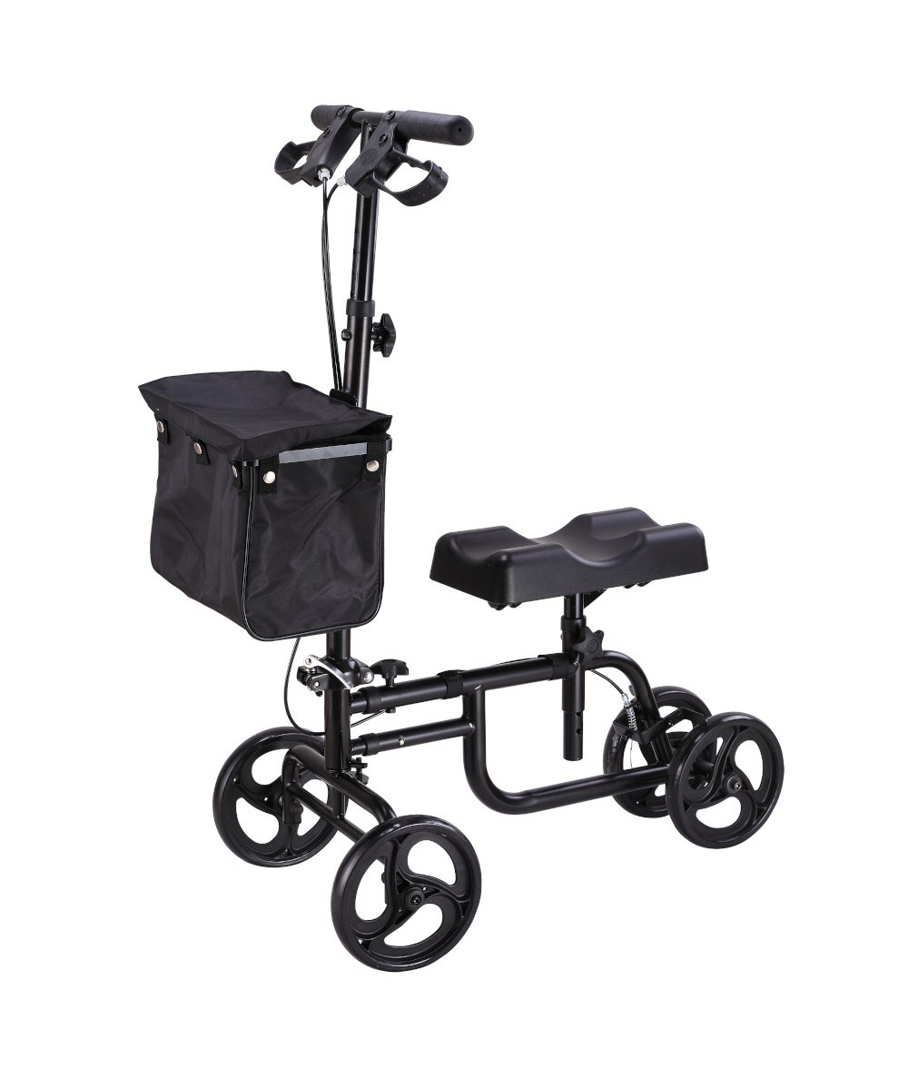 - Tiene un cuadro de aluminio con ruedas delanteras dirigibles y cuenta con una almohadilla de espuma para apoyar la rodilla