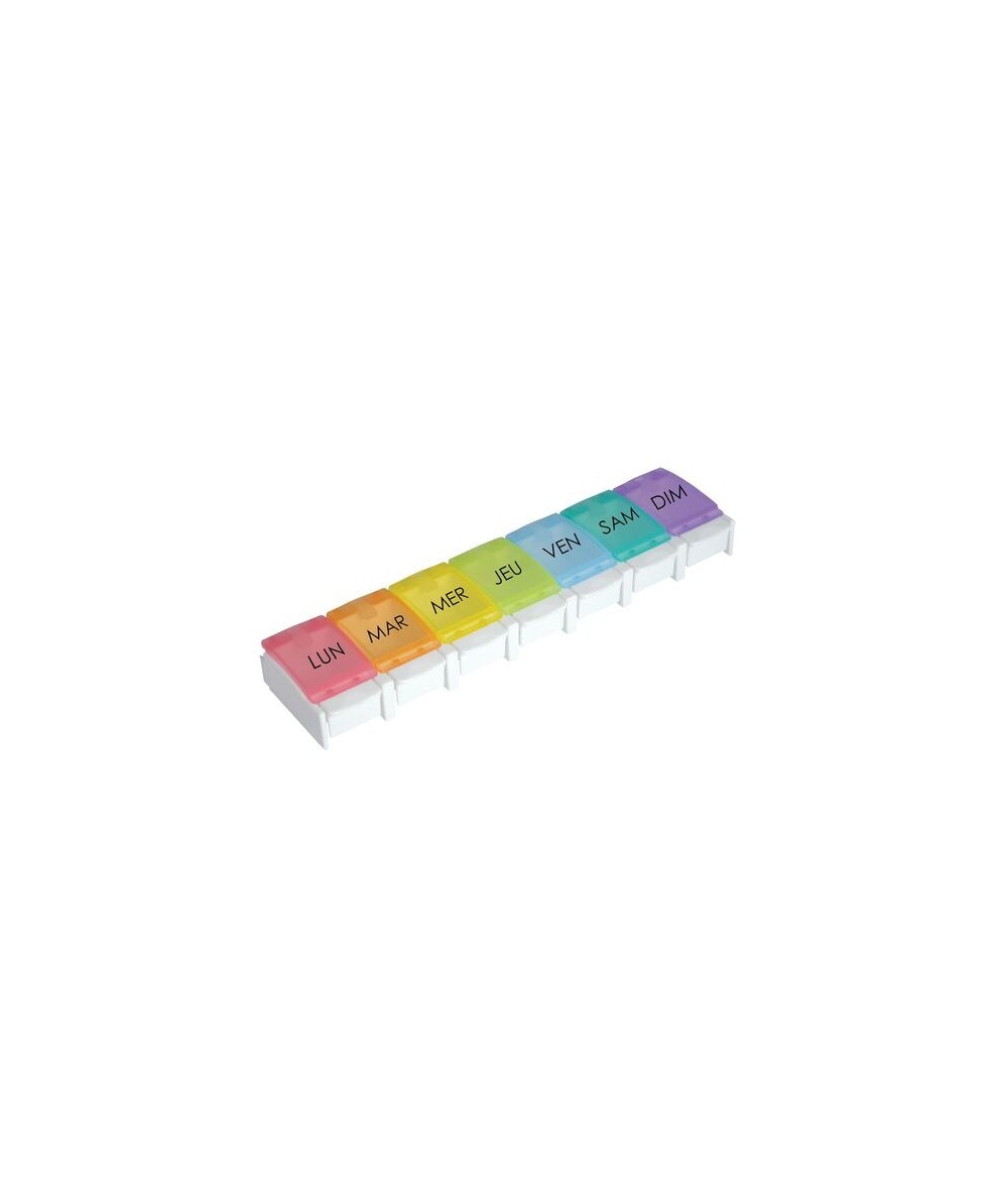 Pastillero de fácil apertura para personas con dificultades de agarre: basta con pulsar el botón correspondiente a la caja. Dimensiones : 22 x 5.5 x 2.5cm. Dimensiones de compartimento : 3 x 3.5 cm.