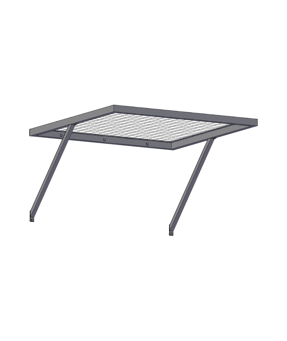Panel en malla de acero ondulado con acabado en epoxy para anclar a pared mediante 2 tirantes.