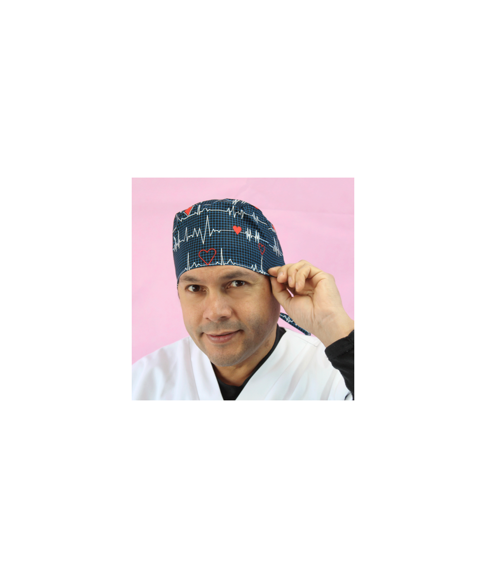 Gorro quirófano pelo corto estampado electrocardiograma y fondo gris antracita.