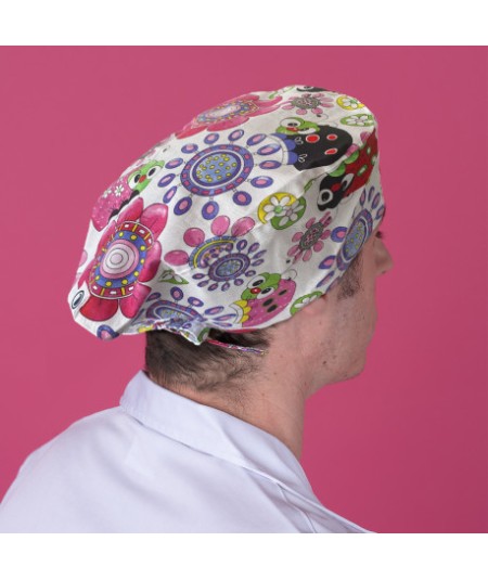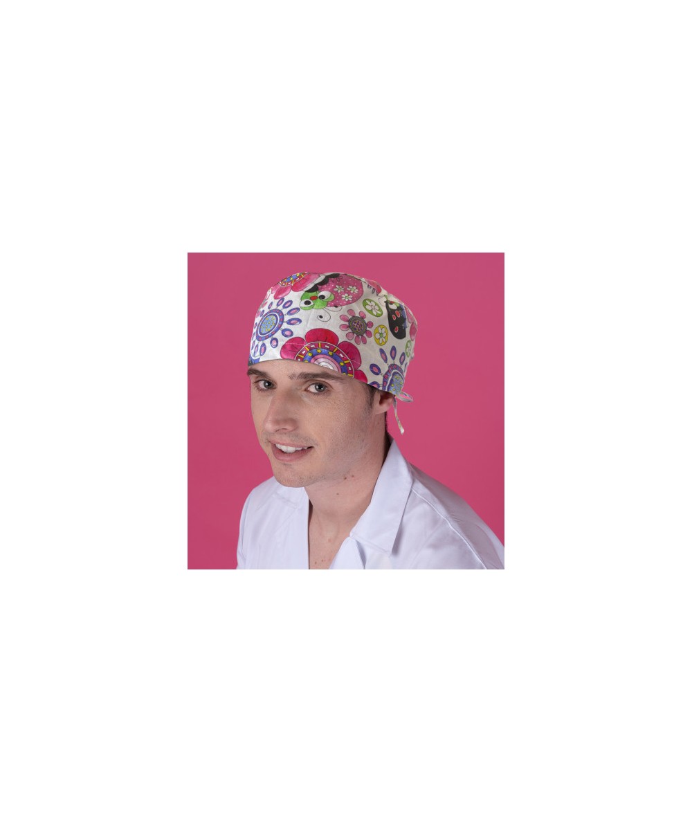 Gorro Quirófano pelo corto con cintas traseras estampado de Insectos.