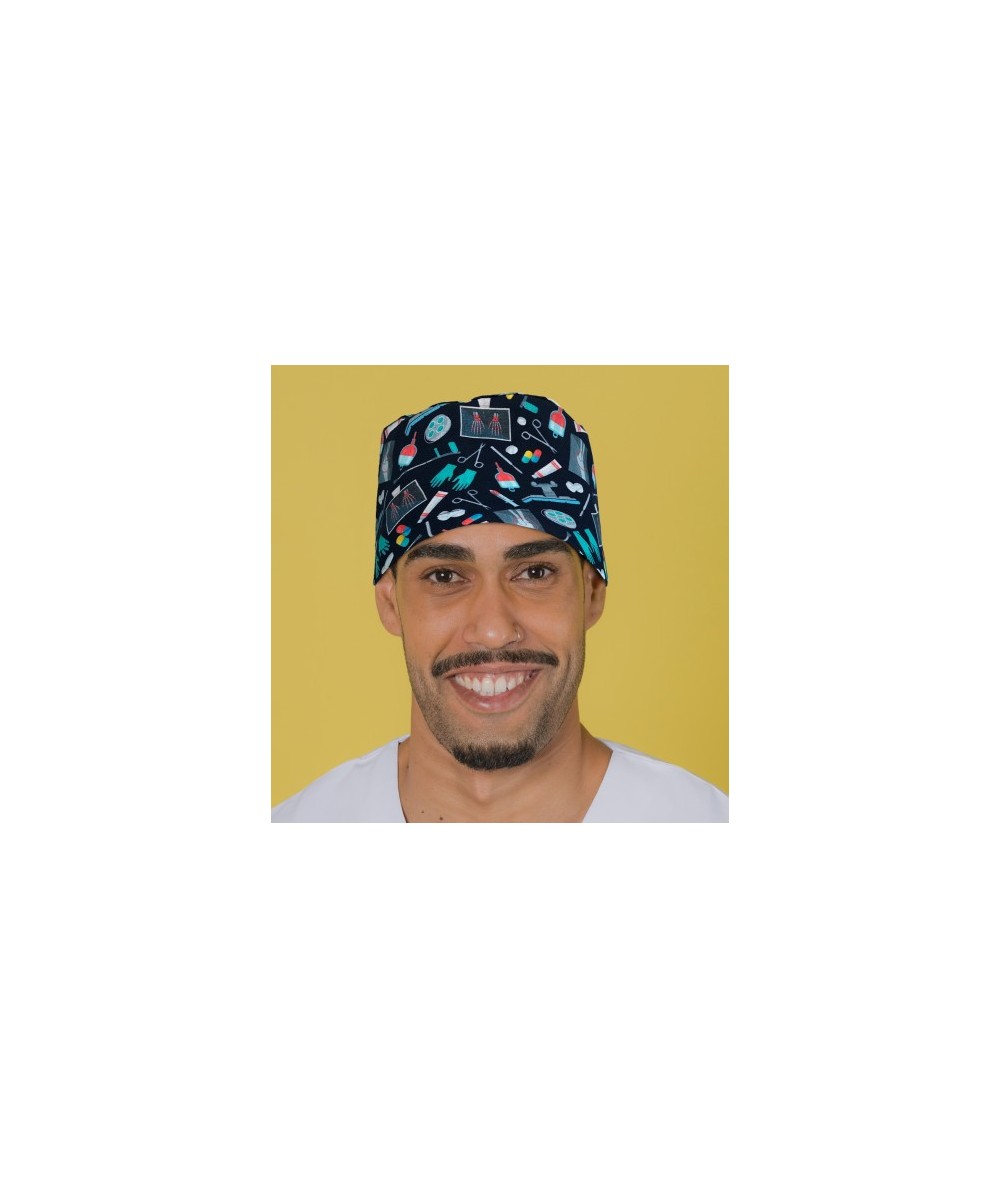 Gorro Quirófano pelo corto con cintas traseras estampado de Instrumental Marino.