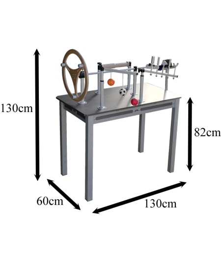 Nueva estructura de acero con acabado en epoxy. Tablero de melamina, complementos de madera barnizado natural y acero con acabado en epoxy. Todas nuestras mesas de ejercitación están diseñadas para su uso en distintas posiciones y por varias personas a la vez. Patas terminadas en conteras antideslizantes.