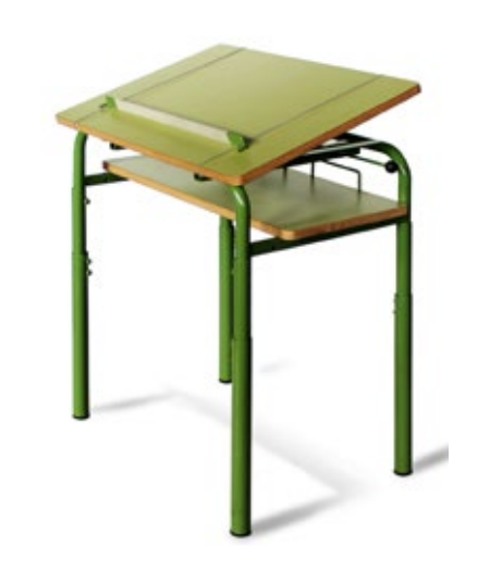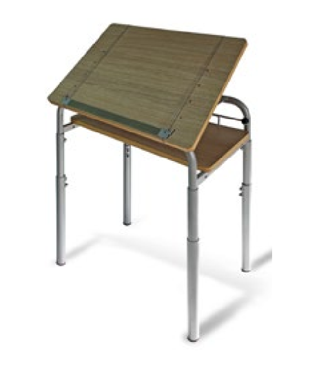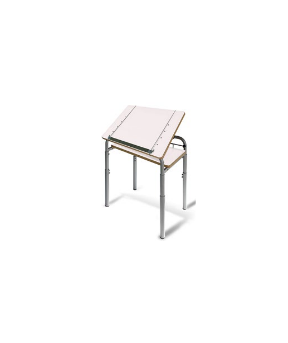 Pupitre ergonómico regulable en inclinación y altura, con soporte para leer y escribir regulable y con estante inferior. Tablero contrachado aplacado en fórmica por los dos lados de 20 mm. de grososr y cantos romos lacados incoloro. Superficie resistente y lavable. Base metálica muy resistente, pintada en color gris metalizado al fuego con regulación en altura.