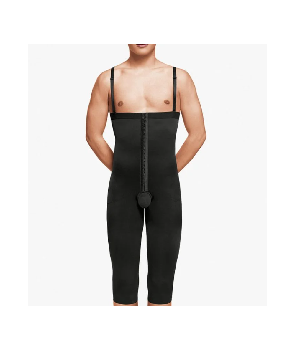 Adecuado para los postoperatorios de cirugía combinada de abdomen,muslos, rodillas y prótesis de glúteos. Tirantes regulables y extraíbles. Apertura frontal con corchetes de tres hileras. Alto nivel de calidad en los tejidos, confección y acabado de las prendas. Región urogenital abierta.