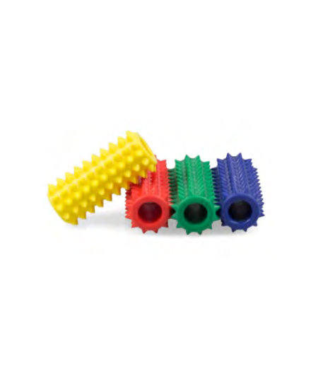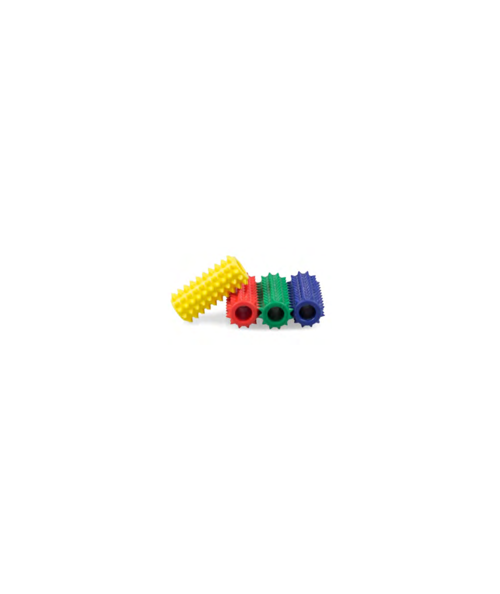 Set de 4 rodillos para el rodillo dermo masaje. Al tener 4 durezas diferentes que se pueden intercambiar de manera fácil, es perfecto para graduar la estimulación de la sensación de la zona a tratar. Durezas: Amarillo = Suave; Rojo = Medio; Verde = Duro; Azul = Extra duro.
