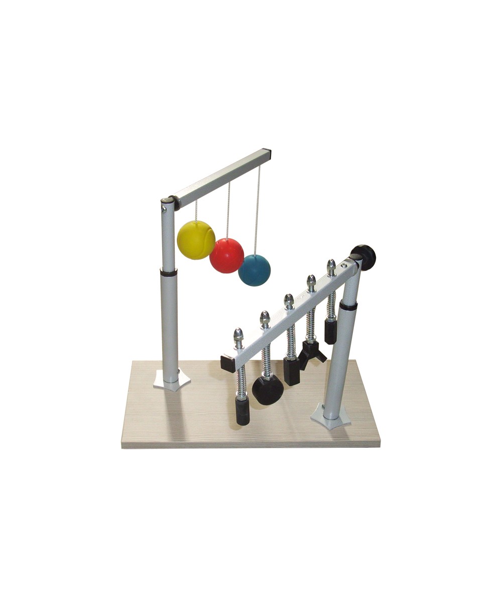 Tablero de melamina. Complementos de acero con acabado en epoxy. Diseñado para el uso individual. Tanto el juego de pelotas como el de tornillos se pueden girar 360º sobre su eje vertical para adaptarlo al uso más cómodo sentado, recosado o de pie, en una silla, en la cama o sobre una mesa.