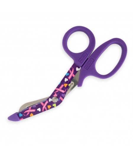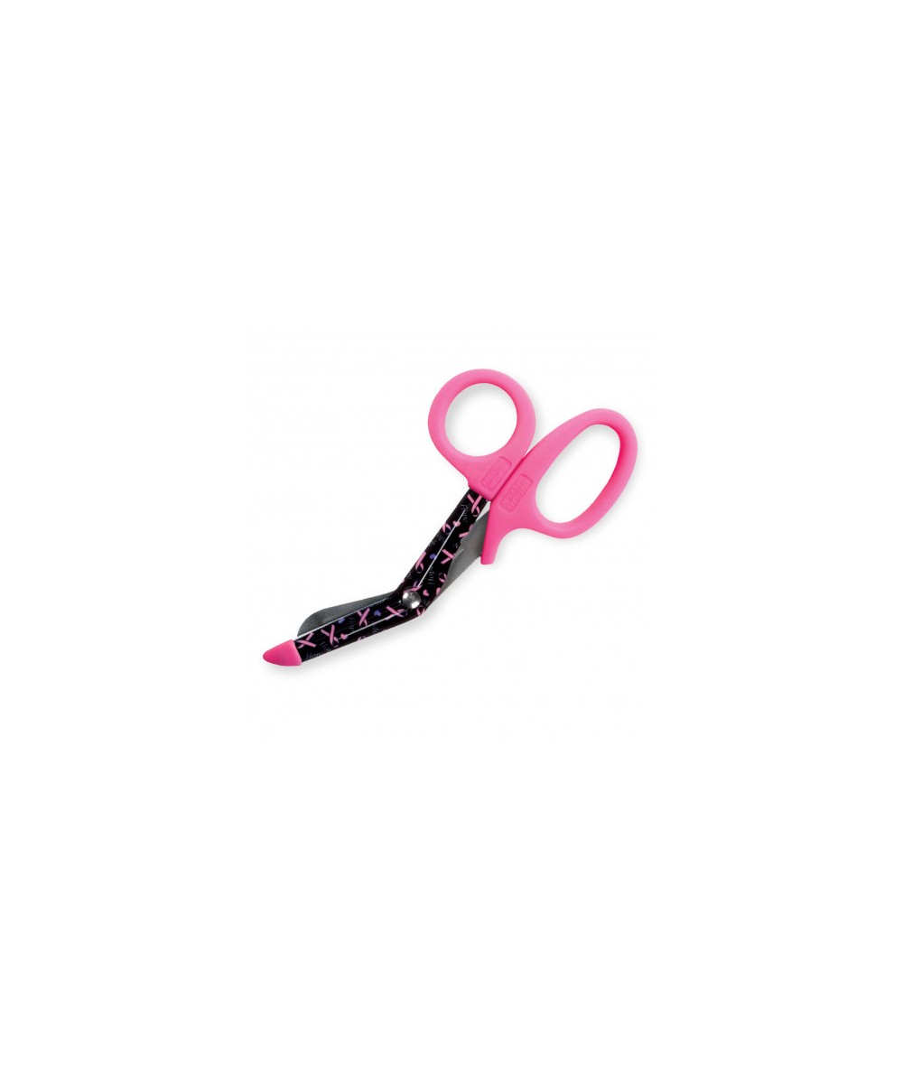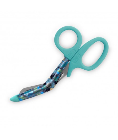 Tijera corta vendaje, ropa, etc. con hoja decorada con estampado.