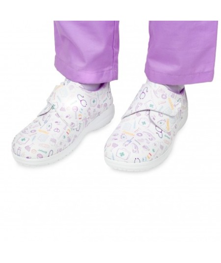 Zapato sanitario cerrado fabricado en España con piel vegana impermeable y transpirable, ligera y ecológica.