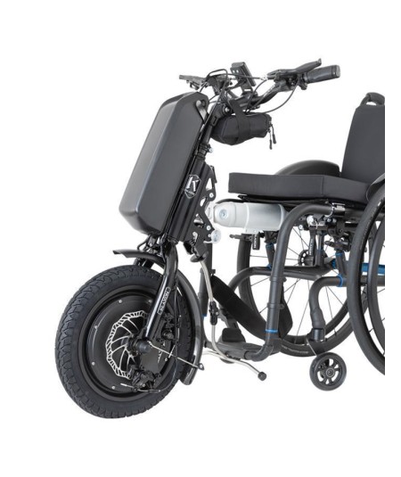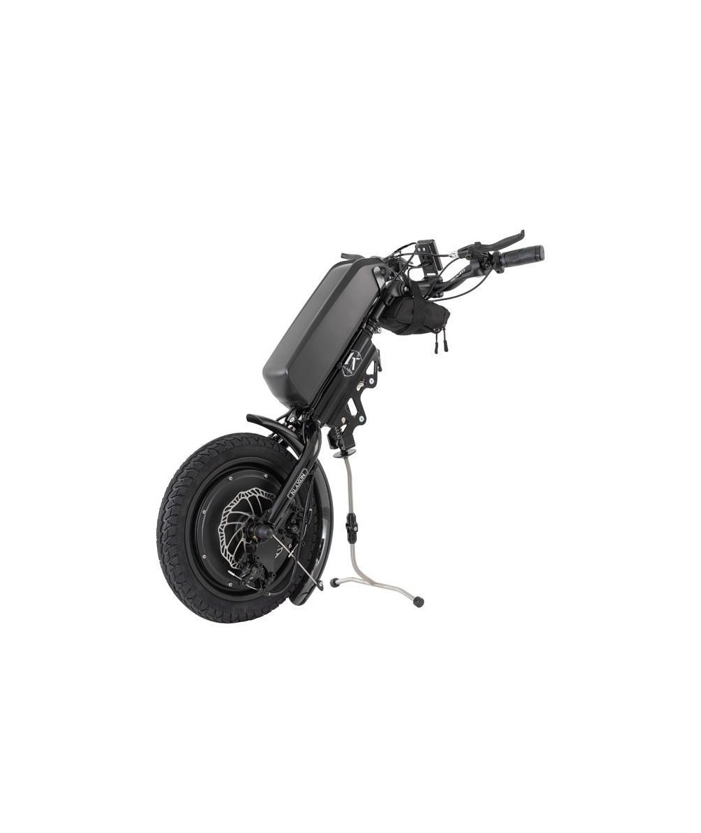 Está equipada con rueda de 14”, motor de 48V x 1500W y batería de litio de 48V. El manillar, que es de aluminio y ajustable en altura, profundidad y ángulo, está disponible en dos versiones: Estándar y Tetra (para personas con tetraplejia: acelerador y freno activados mediante movimiento de empujar y tirar).