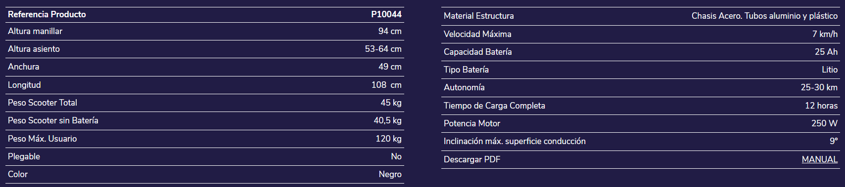 - Peso del scooter: 22,5 kg, lo que lo hace relativamente ligero.