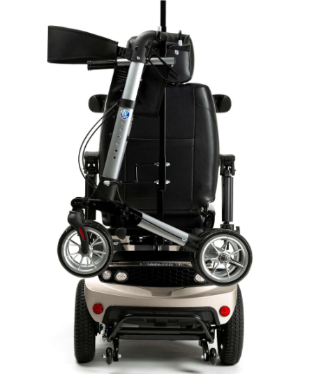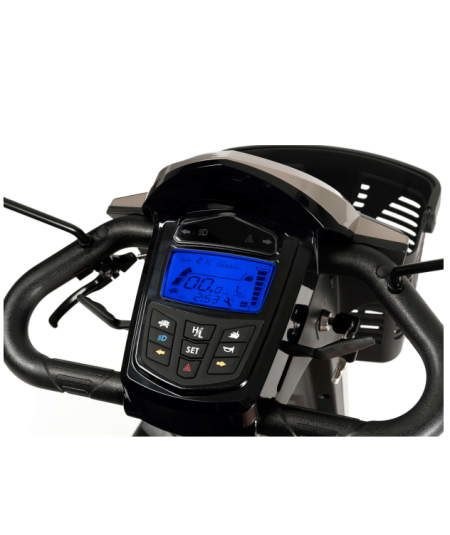 Un scooter de 4 ruedas elegante y muy práctico. Totalmente ajustable y equipado con un cómodo reposacabezas y con reposabrazos ajustables.
