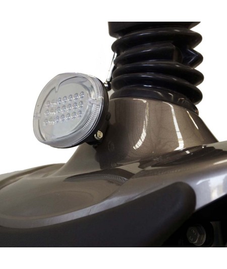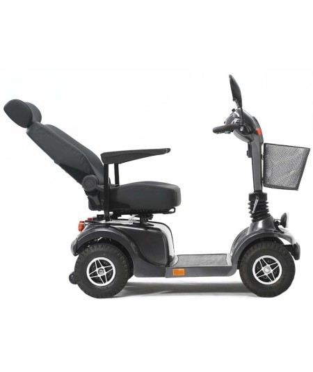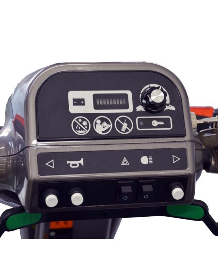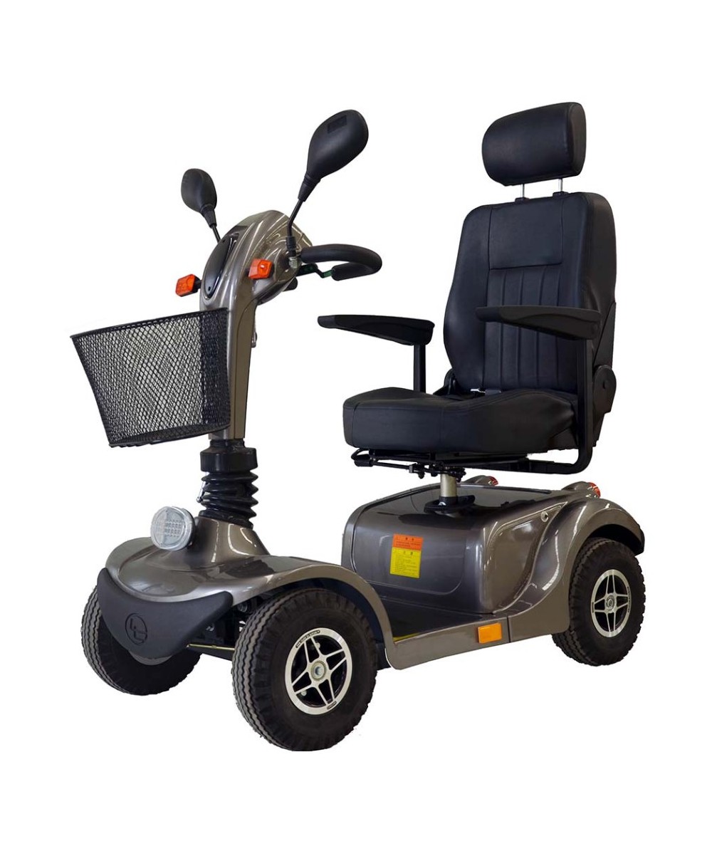 Su motor de 600W te permitirá alcanzar una velocidad máxima de hasta 12 km/h, y sus dos baterías de 45Ah te proporcionarán una autonomía máxima de 45 kilómetros, que junto con sus ruedas neumáticas de serie de 30 cm con llantas de aleación te proporcionarán un mayor confort y un mejor agarre, pudiendo superar los obstáculos del día a día de la manera más confortable gracias también a su suspensión integral independiente a las cuatro ruedas.