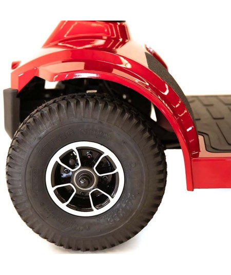 Dispone de un sistema de amortiguación especial. El sistema de amortiguación de este scooter de movilidad está especialmente diseñado para aportar al usuario una experiencia de conducción más cómoda y suave, con el que podrá afrontar baches y caminos irregulares sin inconvenientes gracias a sus 4 amortiguadores regulables integrados.