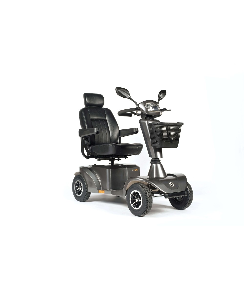 Si eres de los que no puede quedarse quieto, éste es sin duda tu scooter. Equipado con ruedas grandes de 330 mm, el scooter eléctrico S700 es sinónimo de velocidad y potencia. Ofrece un rendimiento superior en exteriores; abordar pendientes de hasta 10º y superar bordillos de hasta 10 cm ya no será un problema. Además, ya no tendrás que preocuparte por la distancia; gracias a las baterías de 75 Amp podrás disfrutar de una gran autonomía y velocidad (hasta 15 km/h). Todo ello en un chasis moderno y robusto, homologado para usuarios de hasta 160 kg y con el confort que proporciona la suspensión a las 4 ruedas, que te asegurará una conducción más suave en todo tipo de terrenos.