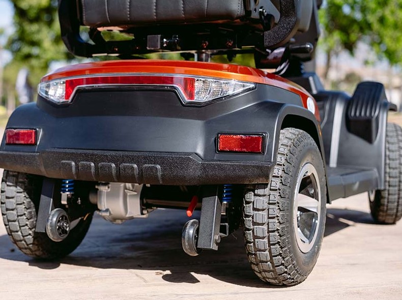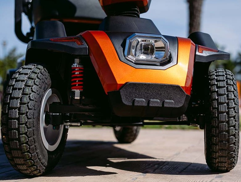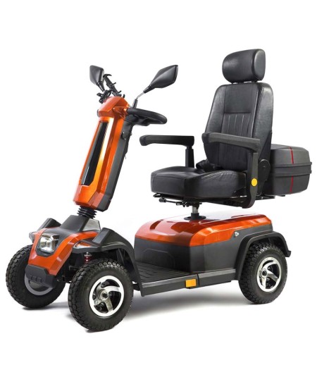 Scooter de gama alta Salvatec Tajo es perfecto para personas mayores o con discapacidad que quieran conservar su independencia y necesiten un scooter compacto y potente, pero también con una gran facilidad de manejo, dotado de amortiguación delantera y trasera que le permitirá pasear tanto en terrenos irregulares como en interiores sin renunciar a las más altas prestaciones, seguridad y confort.
