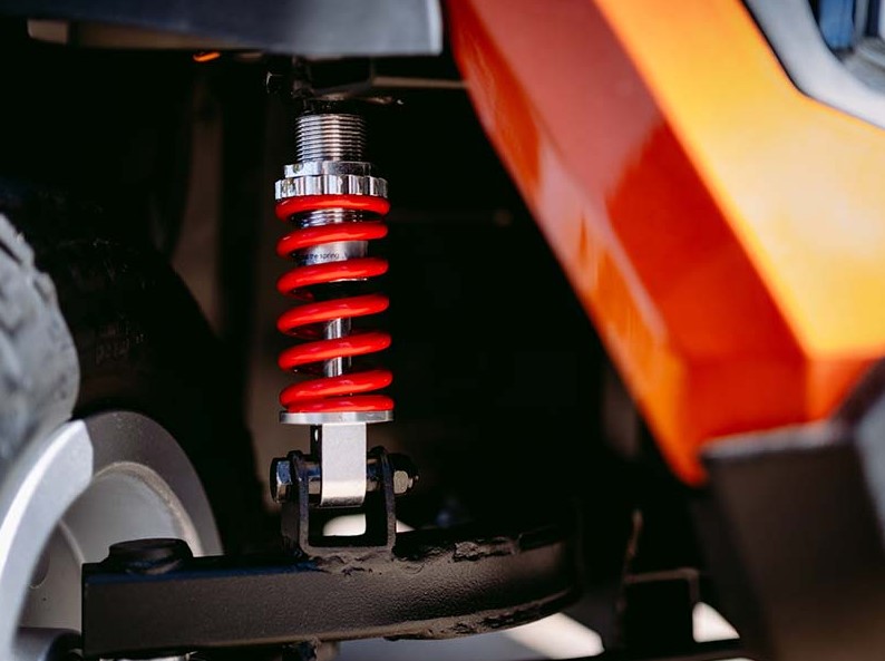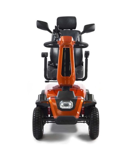 Scooter compacto y potente con una gran facilidad de manejo, dotado de amortiguación delantera y trasera que le permitirá pasear tanto en terrenos irregulares como en interiores sin renunciar a las más altas prestaciones, seguridad y confort.