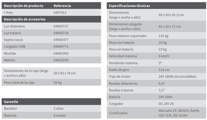 Autonomía: entre 15 y 18 km con batería de litio en condiciones óptimas.