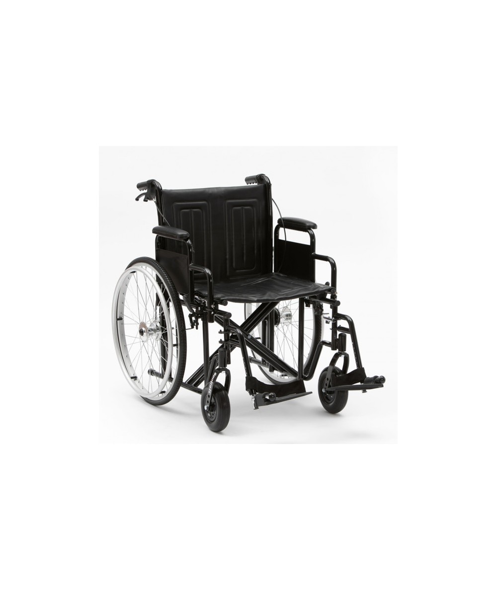 La silla de ruedas Apolo XL ha sido diseñada para soportar pesos de hasta 200 kg. Robusto chasis de acero al carbono pintado en color negro para un acabado atractivo. La tapicería de vinilo con doble relieve brinda un soporte cómodo y duradero. El sistema de plegado facilita el almacenamiento y el transporte.