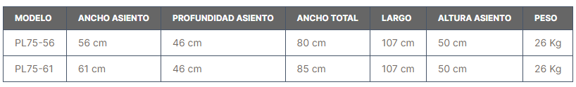 - Disponible en dos anchos de asiento (56 y 61 cm) para adaptarse a las distintas tallas de usuario.