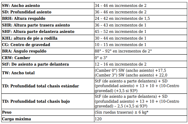 - Ideal para persones que quieran una silla ligera y manejable que se adapte perfectamente a sus propias exigencias