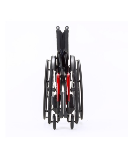El camber ajustable permite hasta 4º de inclinación de las ruedas en incrementos de 2,5 cm. Un ajuste simple que puedes realizar en cualquier momento. La silla plegable Catalyst 5Vx, de Ki Mobility, es muy rígida y minimiza el movimiento indeseado, gracias a la doble cruceta, que distribuye el peso de forma óptima.