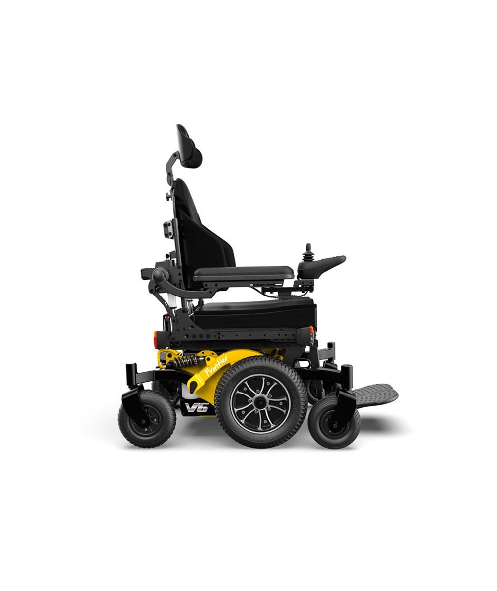La Frontier V6 es diferente a cualquier otra silla de ruedas eléctrica con tracción central. Las cubiertas de baja presión proporcionan una conducción más suave y le dan a la silla Frontier V6 una capacidad de subida impresionante. Sus motores de 800 W te garantizan la potencia que buscas para tus paseos. Sus ruedas de tracción centrales y sus ruedas delanteras y traseras pequeñas proporcionan una base estable que se adapta perfectamente a cualquier terreno, desde las superficies urbanas hasta los terrenos más complicados.