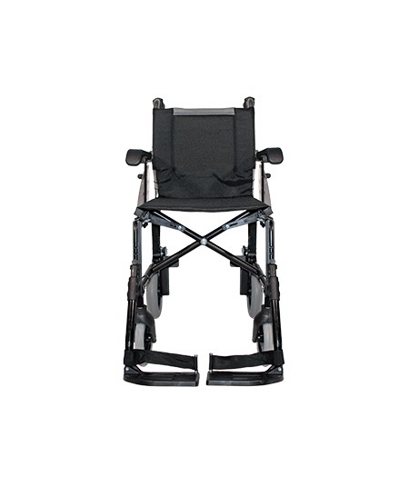 Silla de ruedas Line Kuvo plegable de aluminio superes trecha. Al estar colocadas las ruedas traseras al mismo nivel que el reposabrazos se consigue una silla mucho más estrecha de lo normal. Está fabricada en aluminio sin ninguna soldadura y el diseño ergonómico de los tubos del respaldo permiten que el usuario pueda utilizar toda la profundidad del asiento añadiendo soporte lumbar. Los reposabrazos y reposapiés son extraíbles y además estos últimos se pueden regular en altura. Cuatro tallas diferentes en función del ancho de asiento.