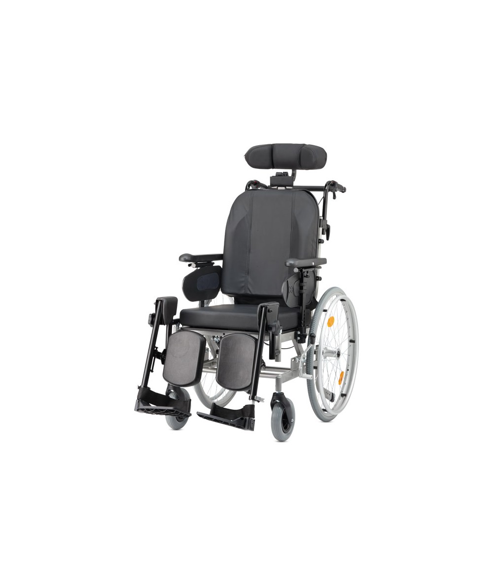 La Protego ya está equipado en serie con numerosos funciones que permiten la adaptación individual de la silla de ruedas al paciente: anchura y profundidad ajustable del asiento así como altura ajustable del respaldo y ángulo regulable del asiento y del respaldo. El reposacabezas que se puede regular 3 veces, las partes laterales regulables en altura y profundidad y los reposa piernas regulables de forma horizontal con compensación manual de la longitud ofrecen opciones adicionales de adaptación. Para aún más espacio para las piernas los reposa piernas se encuentran aquí afuera del cuadro de asiento.
