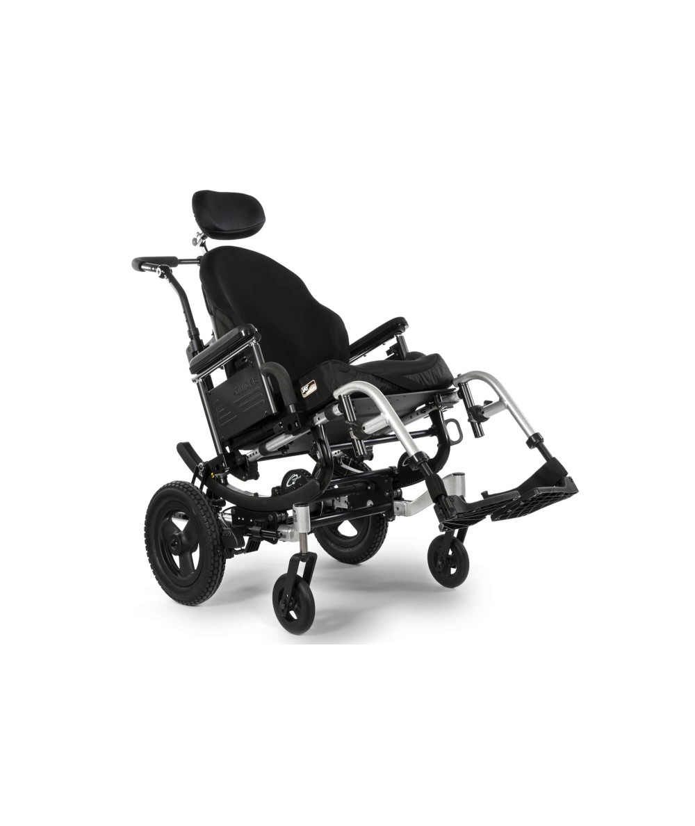 La Quickie IRIS presenta un innovador diseño que permite que el asiento rote con respecto a la base, así el centro de gravedad del usuario permanece constante cuando es basculado. De esta manera se puede conseguir un grado de basculación efectivo de hasta 60º con total estabilidad y comodidad para el usuario. Además su especial diseño permite que la base sea lo mas corta posible favoreciendo así la maniobrabilidad de la silla.