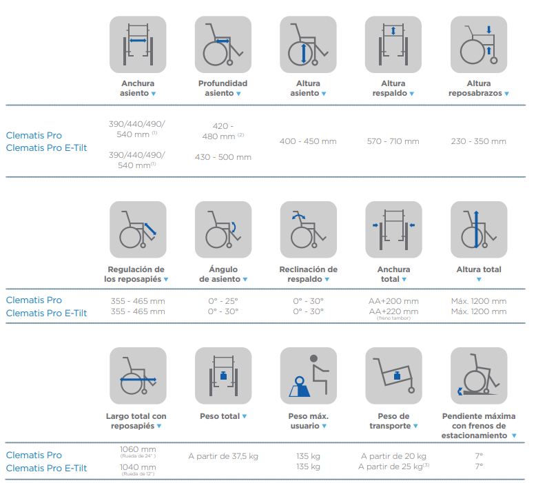 Rea Clematis Pro ha sido diseñada para ofrecer a los usuarios una experiencia de conducción y de confort única. Gracias a los años de experiencia adquiridos, la nueva Clematis Pro se beneficia de todas las características de la Clematis, añadiendo más confort, estabilidad y seguridad. Su chasis compacto permite una maniobrabilidad óptima, especialmente en interiores. Las ruedas traseras están situadas en una posición más avanzada para garantizar un acceso facilitado a los aros para los usuarios que se autopropulsan.