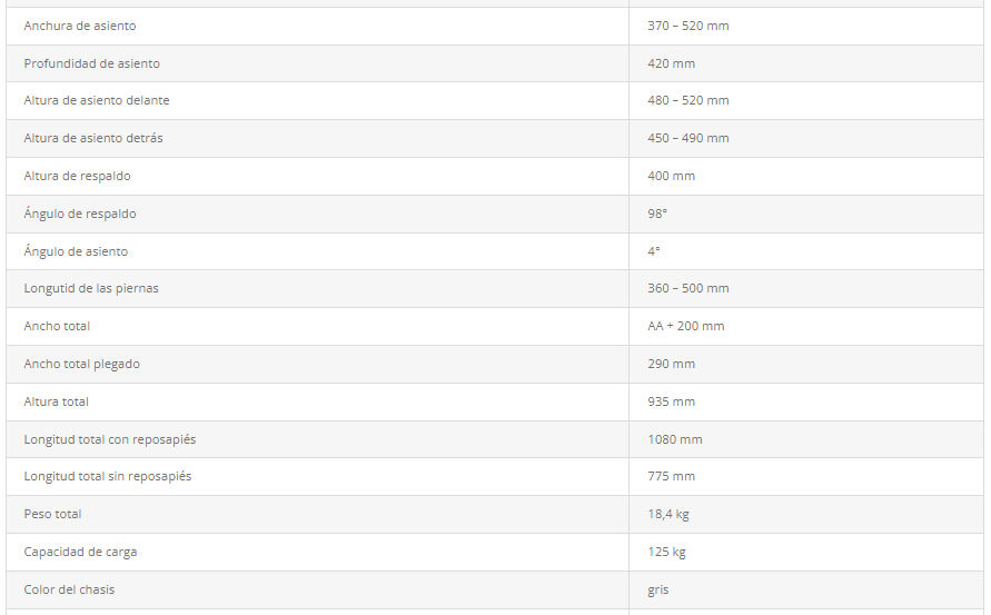 -Cruceta, Reposapiés y Reposabrazos de acero;