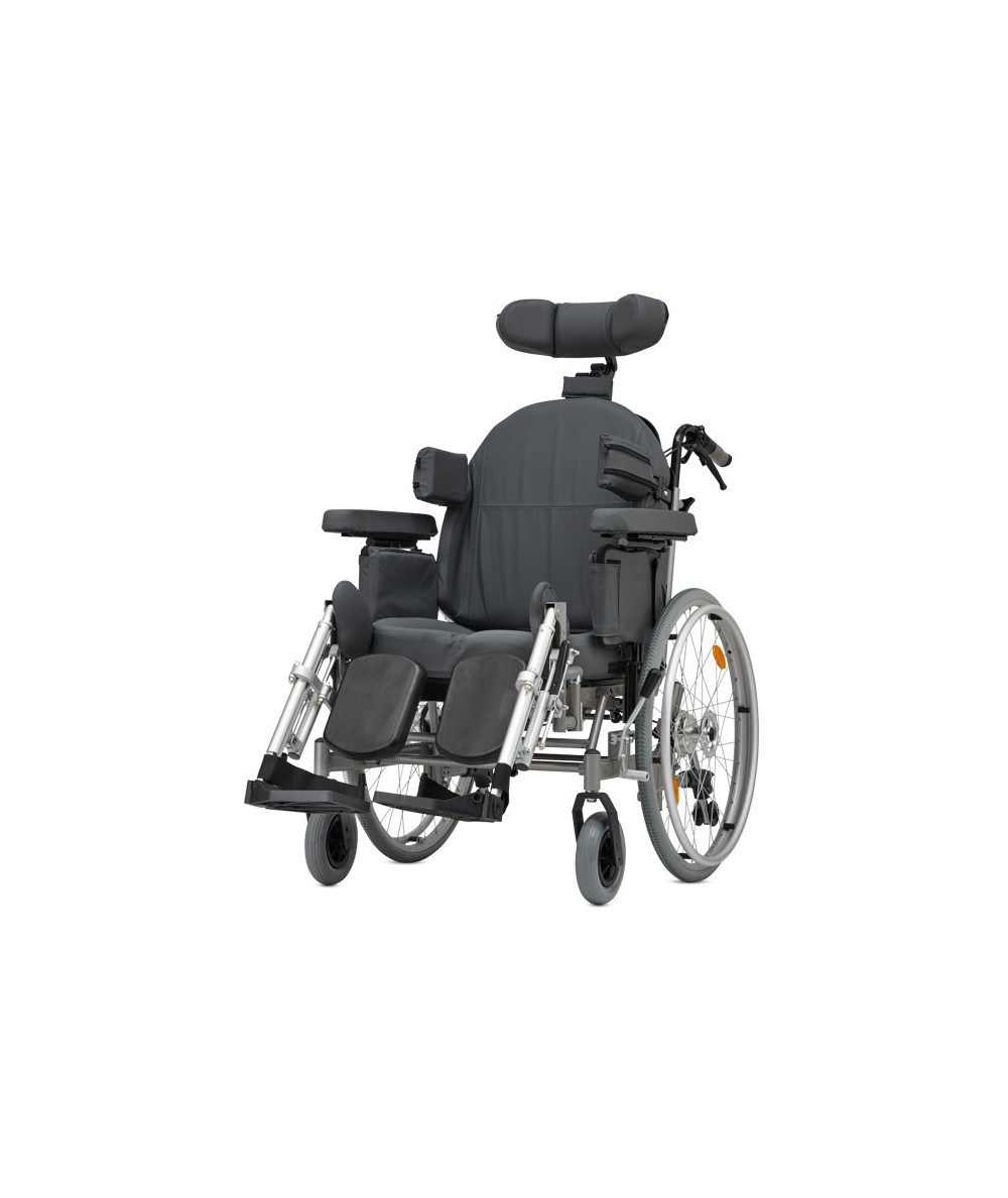 La Triton es la más confortable entre las sillas de ruedas multifuncionales de B+B. Con su carcasa del asiento y del respaldo ergonómico se adapta a los contornos del paciente. Las almohadillas laterales y las almohadillas de rodilla regulables dan el confort y apoyo suplementario. La anchura y profundidad ajustable del asiento así como la altura regulable del respaldo y los reposa piernas regulables en altura con una compensación manual de la longitud vuelven la Triton adaptable de forma individual. Ya en serie, la Triton ofrece además una gama amplia de equipamiento que hacen lo estar sentado aún más confortable: un reposacabezas que se puede regular 3 veces, partes laterales regulables en altura y profundidad y ángulo regulable del asiento y del respaldo.