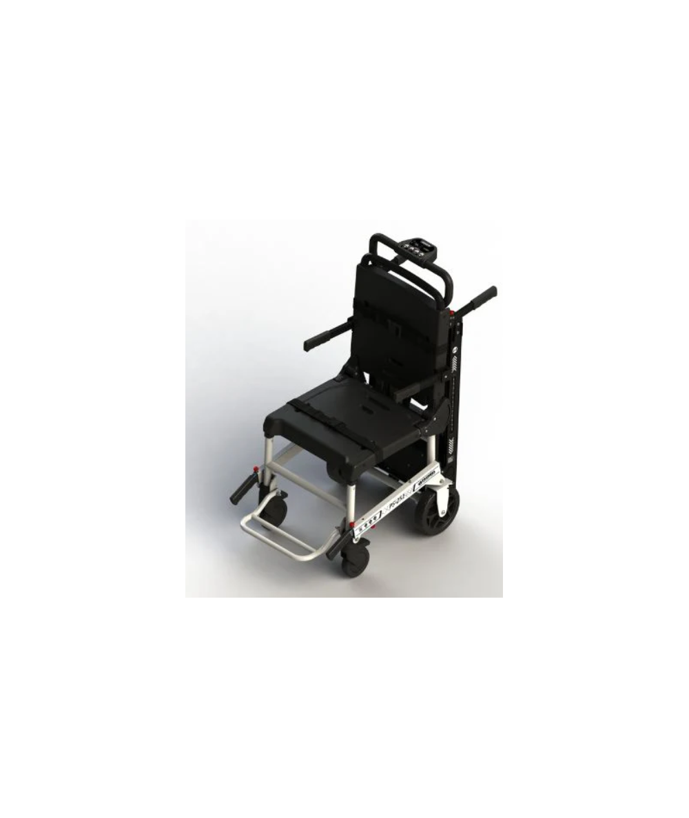 La silla de evacuación PS-251 es un nuevo concepto, ya que tiene la posibilidad de acoplarle el sistema de oruga eléctrico PS-260, que permite un transporte seguro y cómodo subiendo y bajando escaleras. Sus medidas son muy compactas, siendo muy fácil de transportar y almacenar. La silla de evacuación PS-251 dispone de un avanzado sistema que permite un rápido y fácil plegado y desplegado, optimizando su uso.