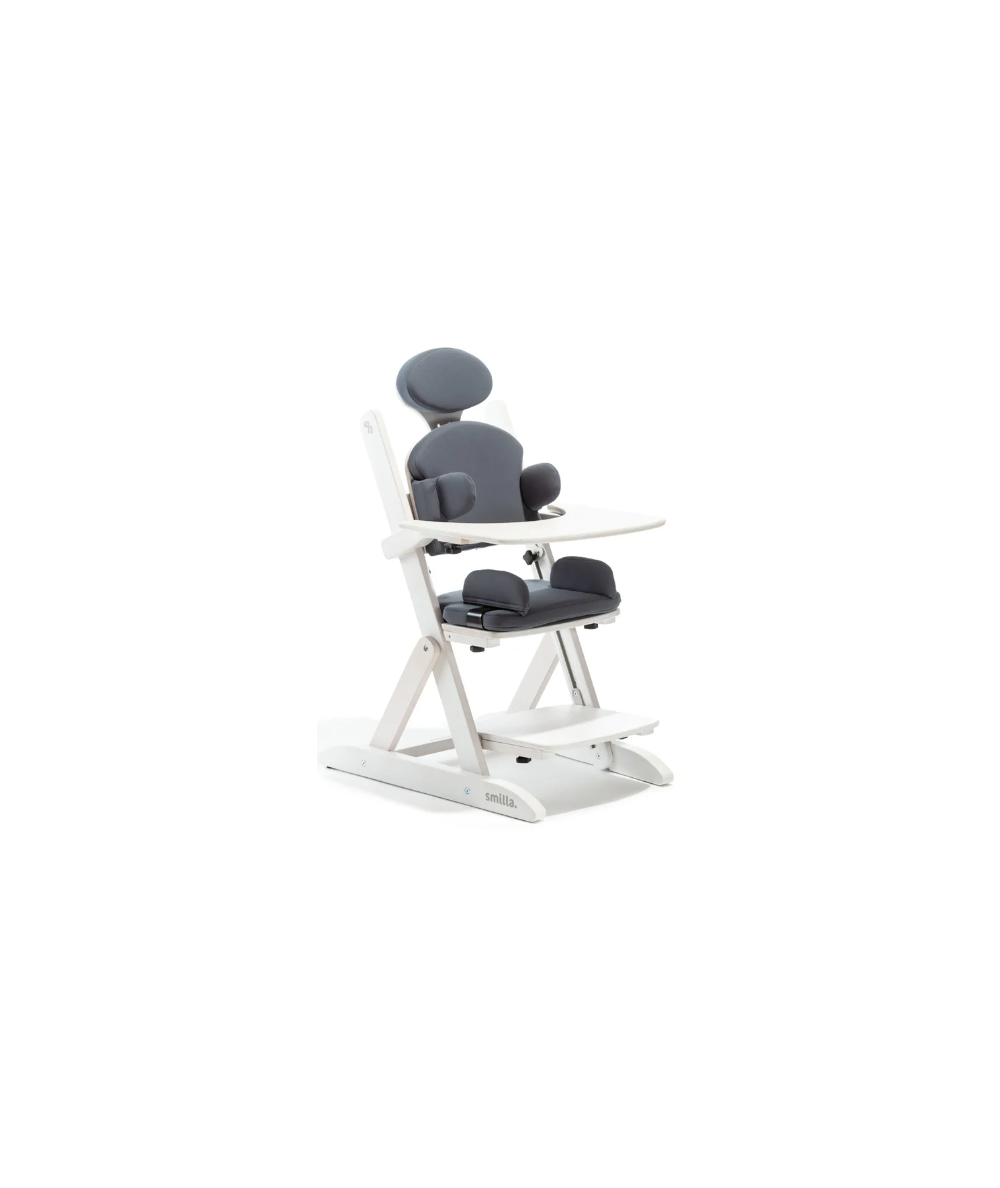 La silla terapéutica Smilla se puede personalizar con ruedas en los resposapiés para poderse mover de un sitio a otro, con mesa regulable en altura a través del reposabrazos y con distintos modernos colores de la tapicería. La amplia gama de accesorios posturales como taco abductor, reposacabezas, sujeciones, soportes de cadera y tronco permiten adaptar esta silla de rehabilitación a cualquier necesidad de posicionamiento.