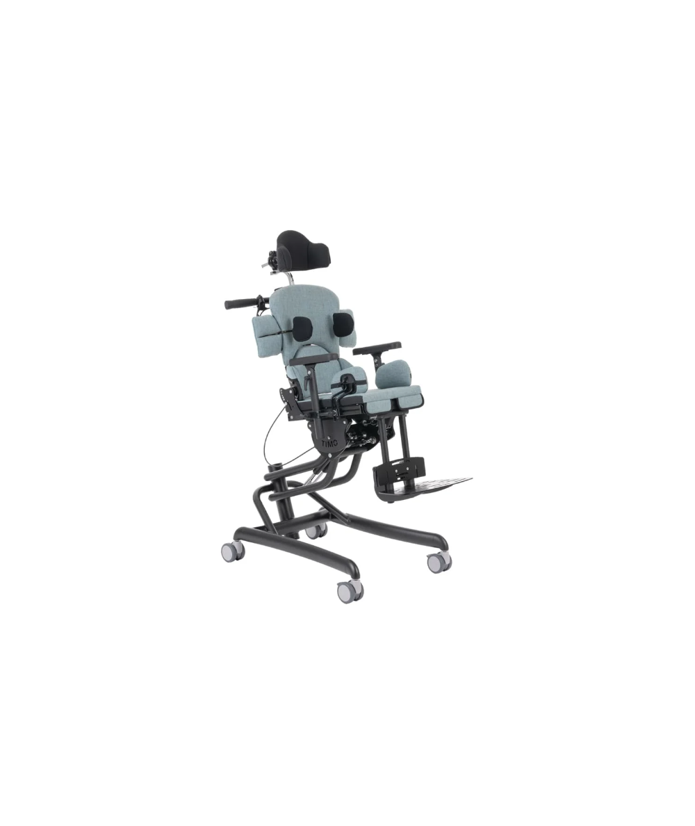 La silla terapéutica con ajuste de altura Timo proporciona una sedestación activa, mediante el ángulo ajustable de asiento y respaldo, así como del ajuste de ángulo de las rodillas. Esta silla de interior está disponible en 2 tallas y tiene un respaldo extraíble por encima de la zona lumbar, para conseguir una estabilización pélvica simultáneamente con una posición erguida en sedestación.