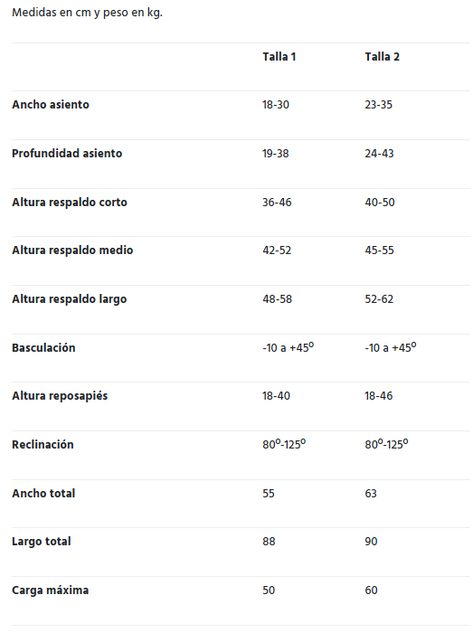 El chasis de asiento con sistema de perfiles ofrece la máxima flexibilidad para posicionar el respaldo, los reposabrazos y los controles de cadera, así como para anclar otros componentes especiales. Ofrece 55º de basculación por puntos, sin pistón de gas (-10º (activo) a +45º).