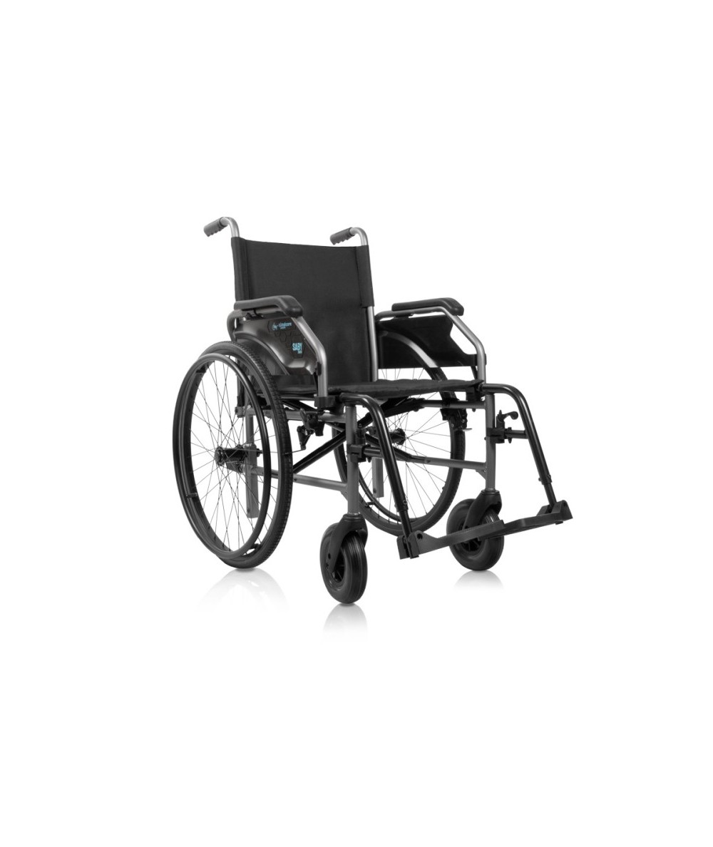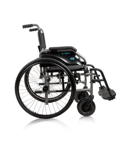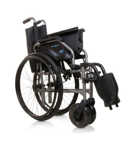 La silla de ruedas Saby está fabricada en acero y dispone de un sistema de doble cruceta para facilitar su plegado. Es muy ligera pero a la vez resistente, admitiendo un peso máximo de 120 kg.