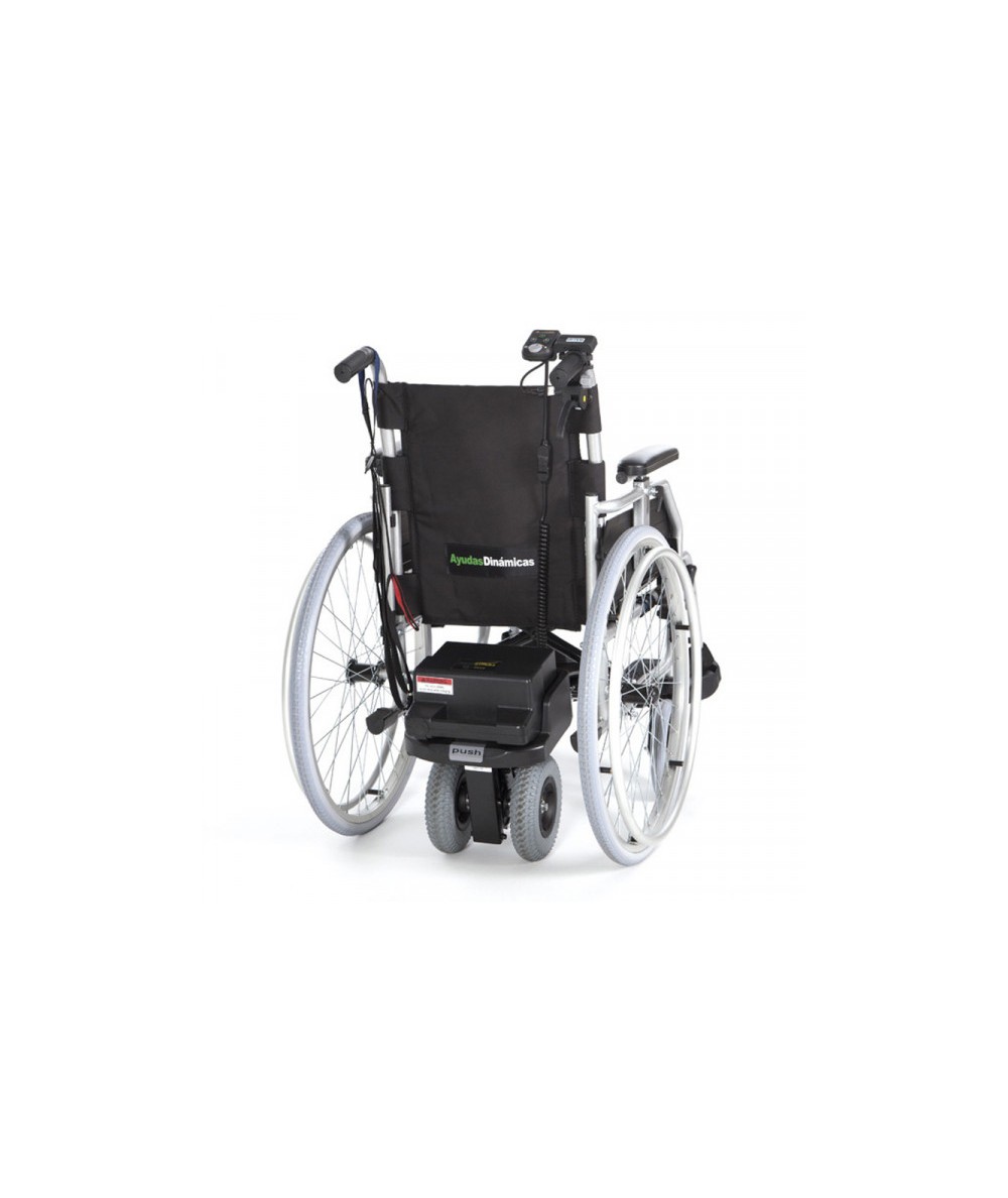 Evita el esfuerzo que implica tener que empujar una silla de ruedas y facilita la subida en las pendientes, rampas y superficies irregulares. Su exclusivo acoplamiento con un solo clic facilita su instalación y desmontado en segundos en la silla de ruedas.