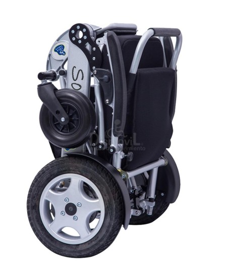 Silla eléctrica supe ligera de aluminio, con baterías de litio, y plegable para facilitar su transporte e introducción en vehículos. Con dimensiones reducidas para maniobrar en ascensores, domicilios,….