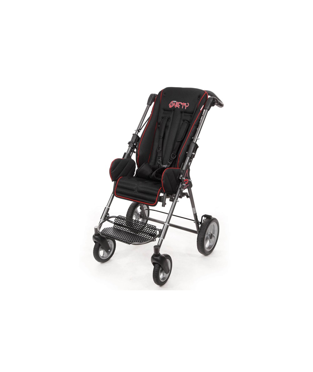 Swifty es una silla ligera, plegable y muy fácil de transportar. Permite realizar ajustes en la longitud de pierna y en la profundidad de asiento para así adaptarse al crecimiento del niño. Con respaldo reclinable de 90 a 115º y una amplia gama de accesorios disponibles.