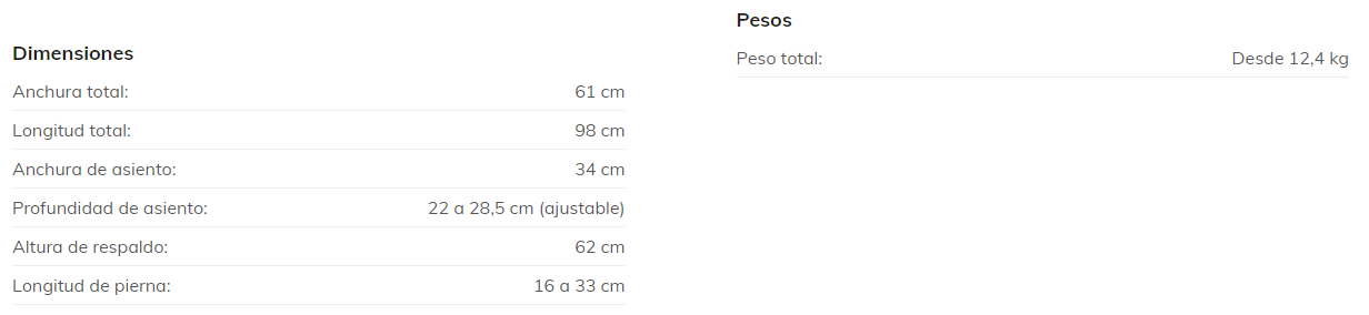 Swifty permite regular la profundidad de asiento de 22 a 28,5 cm. Además permite realizar ajustes en la longitud de pierna, y la reclinación del respaldo de 90 a 115º.