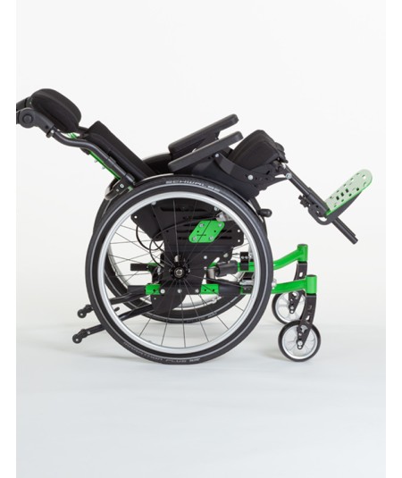 El asiento montado sobre raíles, para ajustar el centro de gravedad a un uso más o menos activo. La regulación del ángulo es independiente sin modificar el centro de gravedad.